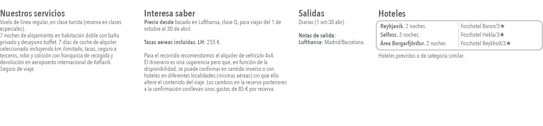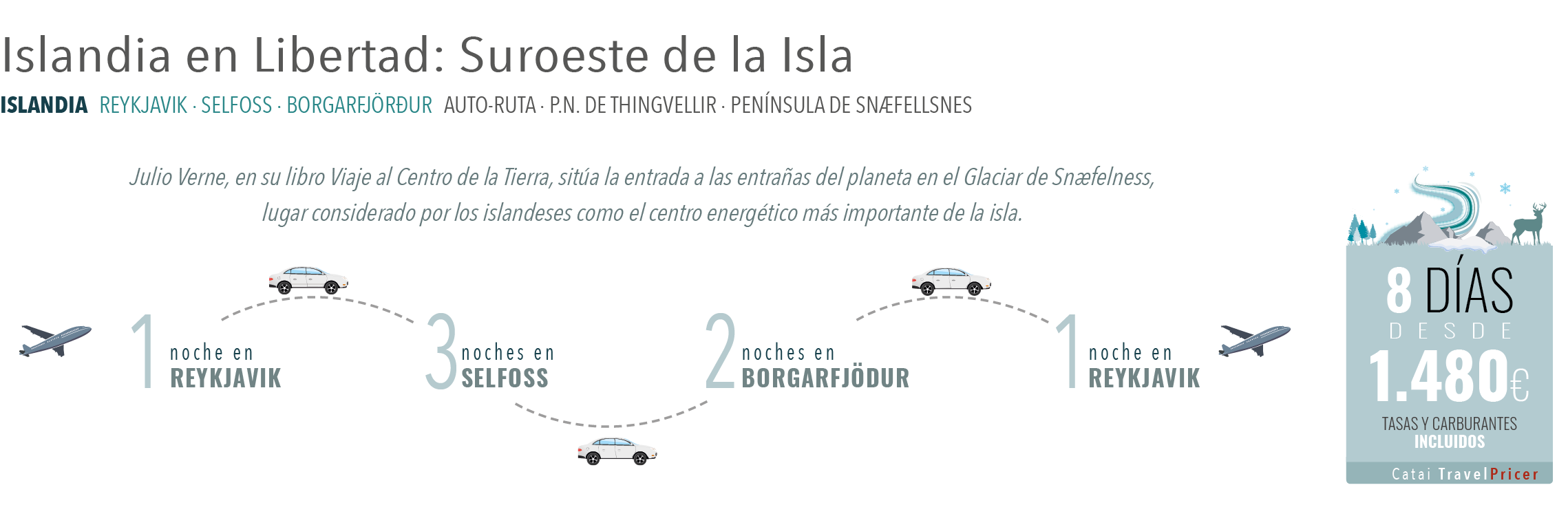 La clasificación hotelera es la estimada por Catai. Precio desde en base a 4 personas viajando en un Toyota Avensis.